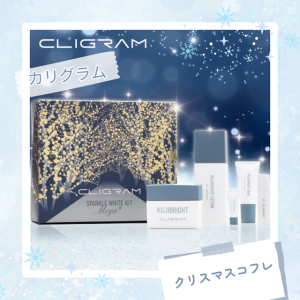 今だけ特別なメガボトルでお届けする、カリグラムの代表アイテム『コジブライト』を中心に、 全5アイテムをセットした豪華なクリスマスコフレを販売中です💗